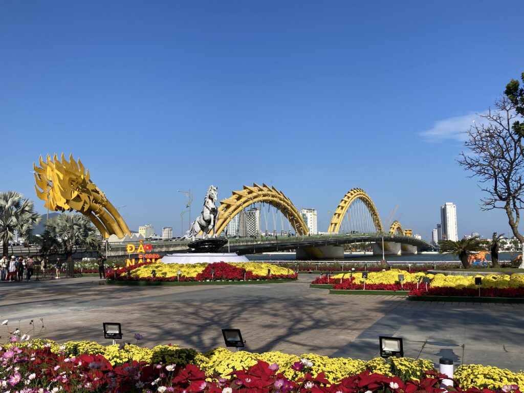 ダナン市街地エリアのランドマーク、ドラゴンブリッジ。(こちらはしっぽの方です。頭の方は夜になると火炎放射をするらしいです)