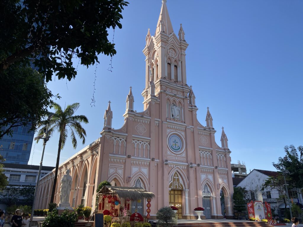 こちら名所のダナン大聖堂。ピンクでっせ。