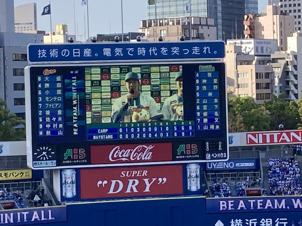 お立ち台はういういしい3名、宮下、勝又、渡会。ゲーム本編も大感動でしたが、このインタビューがいい。泣ける(前席のベイファン夫婦の奥様は実際泣いておりました)。