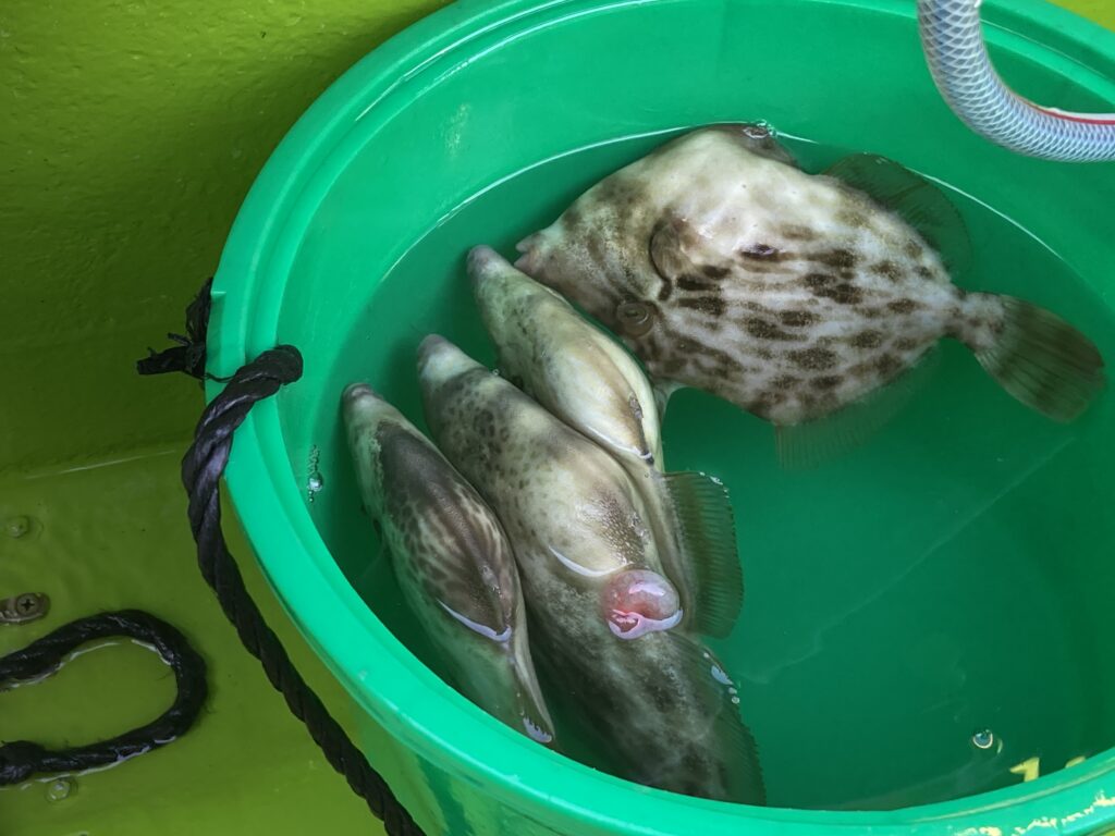 うねりも小さくなり、釣りやすい環境にはなりましたが、カワハギ様のお食事の時間は短いようで、何やってもアタリがなくなりました。14時30分納竿。