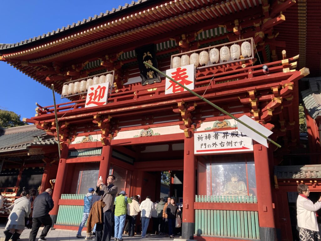 おみくじに長蛇の列、稼ぐねえ。おみくじは巫女に籤を引いてもらうのが正当と考える人は列をなし、自販機でいいじゃんと考える私のような者にはお手軽な「鳩みくじ」。鶴岡八幡宮のシンボル、鳩の根付がおまけについてきます。