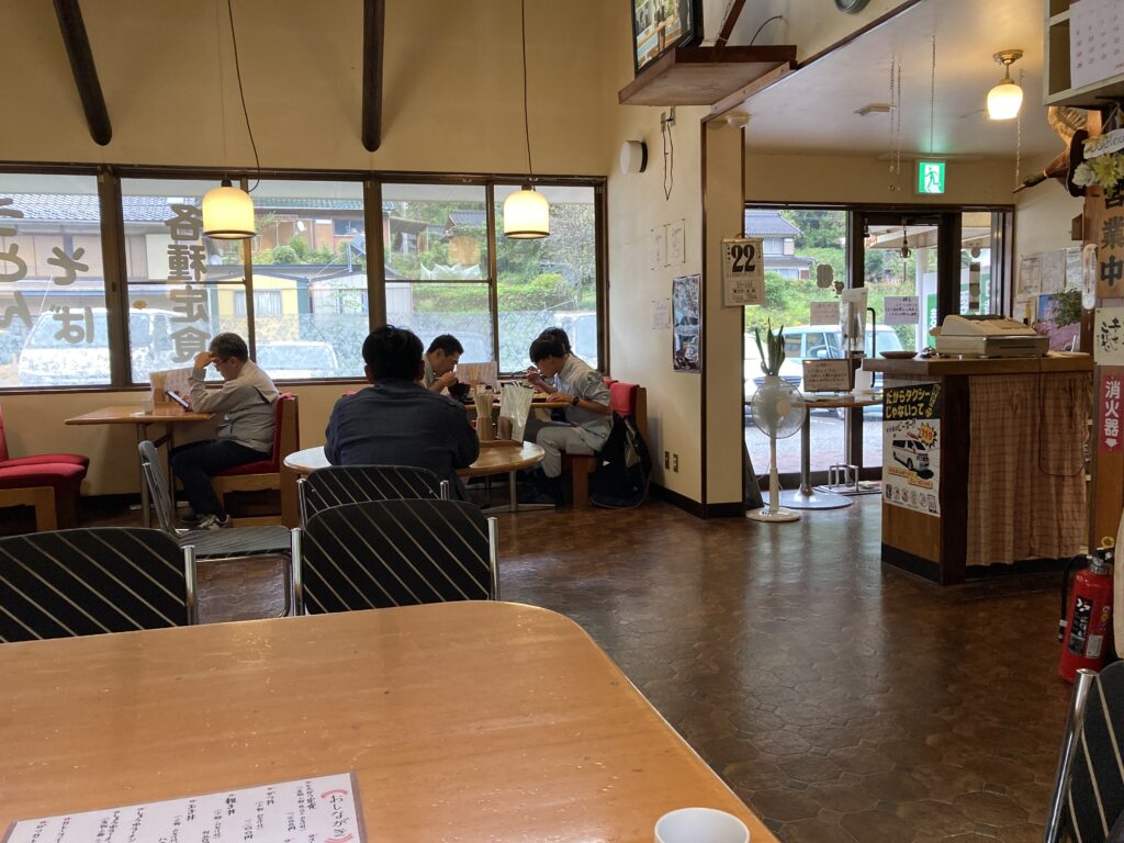 昼飯はドライブインふうの「レストハウスとうえい」さん。山道に駐車場が確保されていればみんな車を停めたくなります。