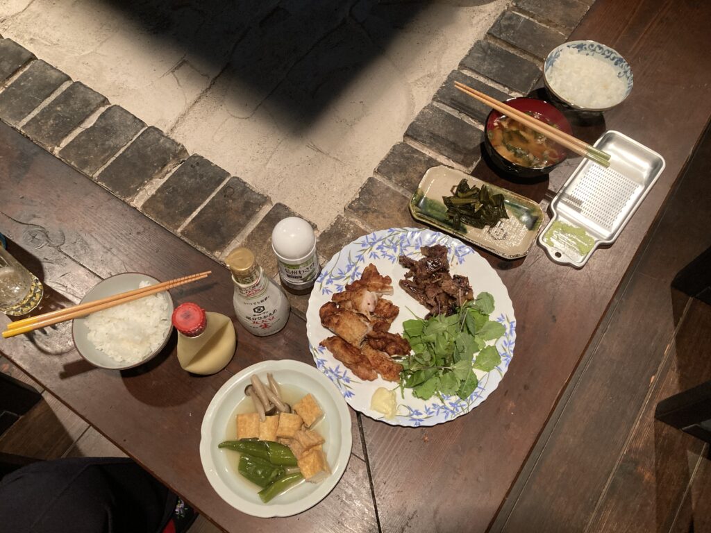 もう今日の夕食はさすがに火を熾さない料理とします。