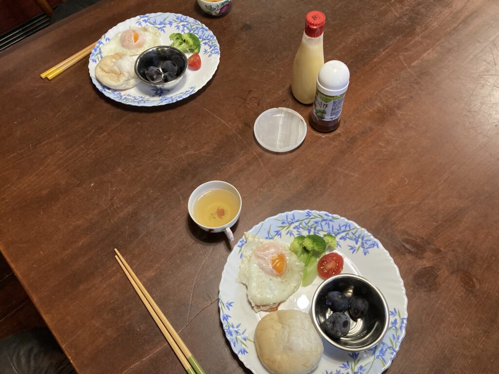 今回は全食事を妻が作ってくれるようです。昨日のしゃぶの残りで作ったスープがうんめえ。葡萄もさすがに信州です。