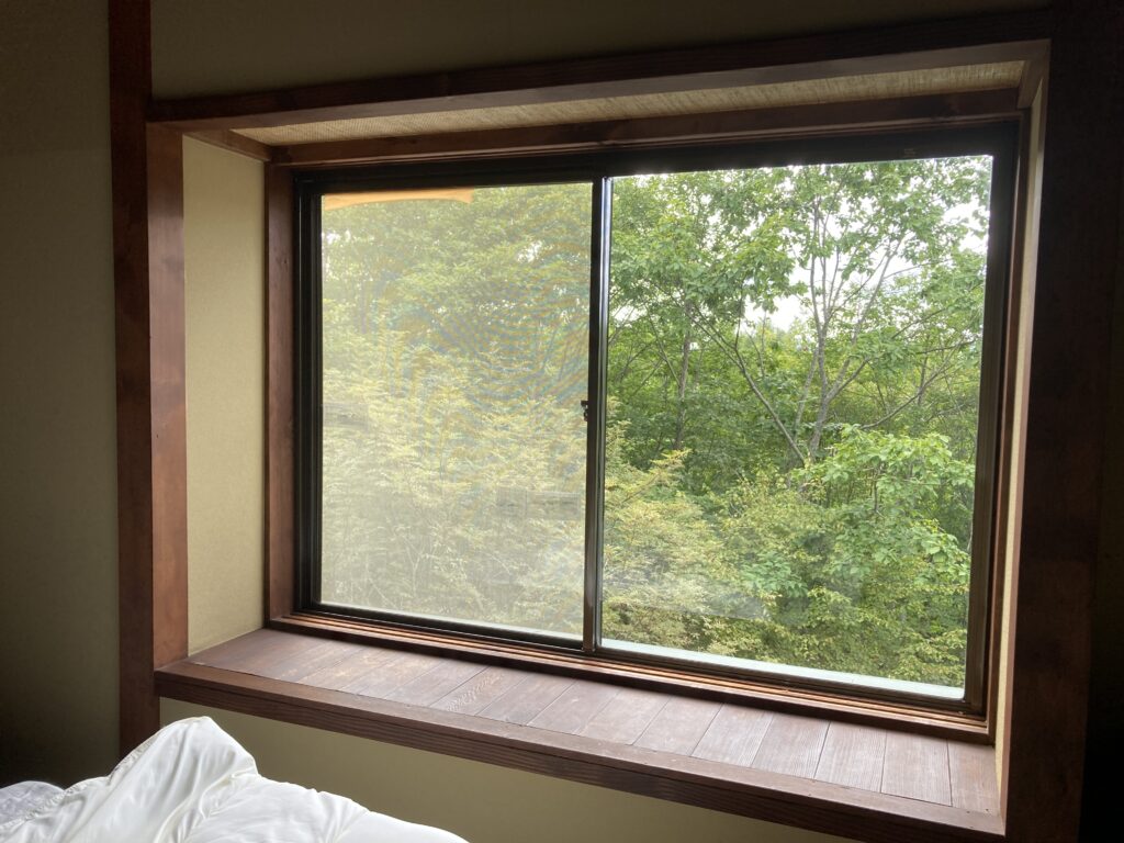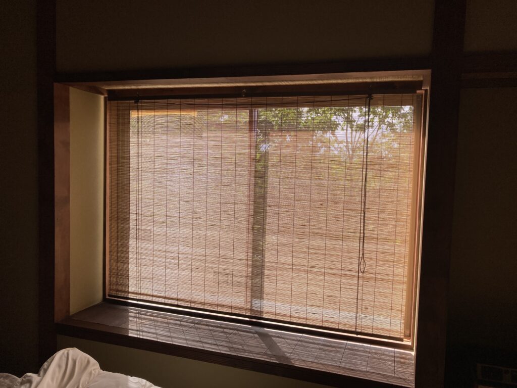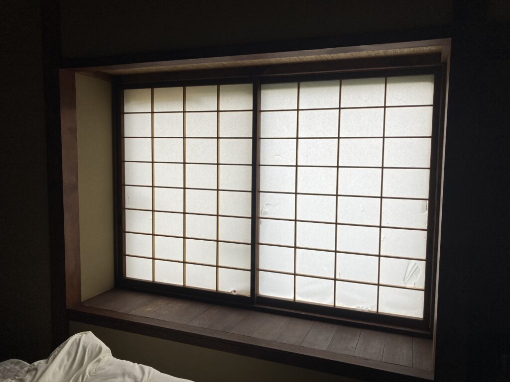 写真ではわかりませんが障子は穴あき部分が多いのと、日差しを一向にさえぎってくれないので、この部屋だけむちゃくちゃ日当たりが良くて暑くなってしまいます。朝は早々と明るくなります。で、障子を外し、